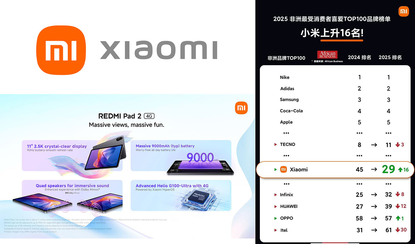 حققت شاومي إنجازًا بارزًا بحلولها في المرتبة 29 ضمن تصنيف Brand Africa لعام 2025 لأكثر العلامات التجارية المحبوبة في القارة، متقدمة بـ16 مركزًا مقارنة بالسنة الماضية. هذا التقدم يعكس ثقة المستهلكين المتزايدة وانتشار العلامة بقوة في الأسواق الإفريقية، وخصوصًا في المغرب، حيث تواصل شاومي تعزيز مكانتها من خلال الابتكار والعروض