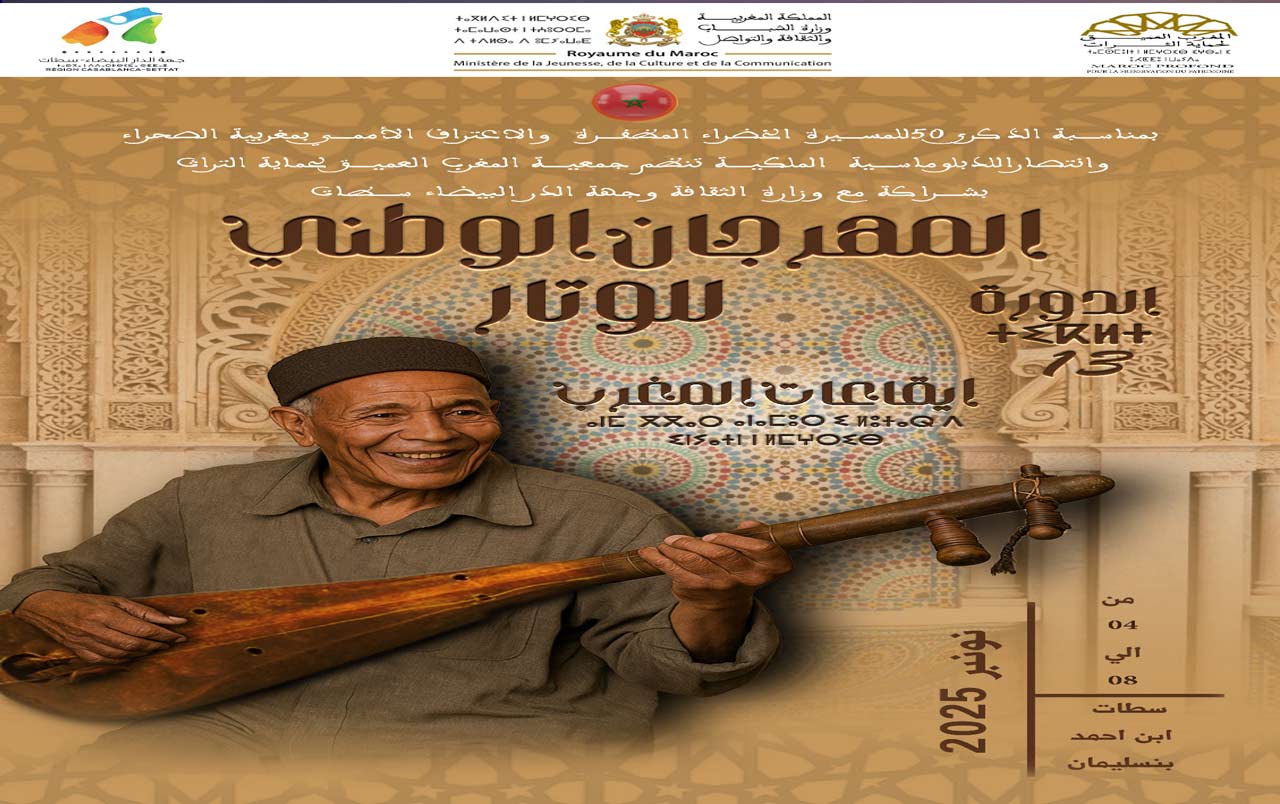 متابعة القراءةأكدت جمعية المغرب العميق لحماية التراث، بشراكة مع وزارة الشباب والثقافة والاتصال -قطاع الثقافة- وجهة الدار البيضاء سطات، أن فعاليات الدورة 13 للمهرجان الوطني للوتار إيقاعات المغرب ستنطلق من 4 إلى 8 نونبر 2025، تخليداً للذكرى الخمسين للمسيرة الخضراء المظفرة وعيد الاستقلال المجيد، وستقام هذه التظاهرة الثقافية بكل من مدن